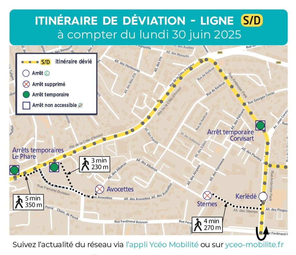 L’arrêt Sternes ne sera pas desservi (dans les 2 sens) et sera reporté à l’arrêt Kerlédé (accessible PMR)