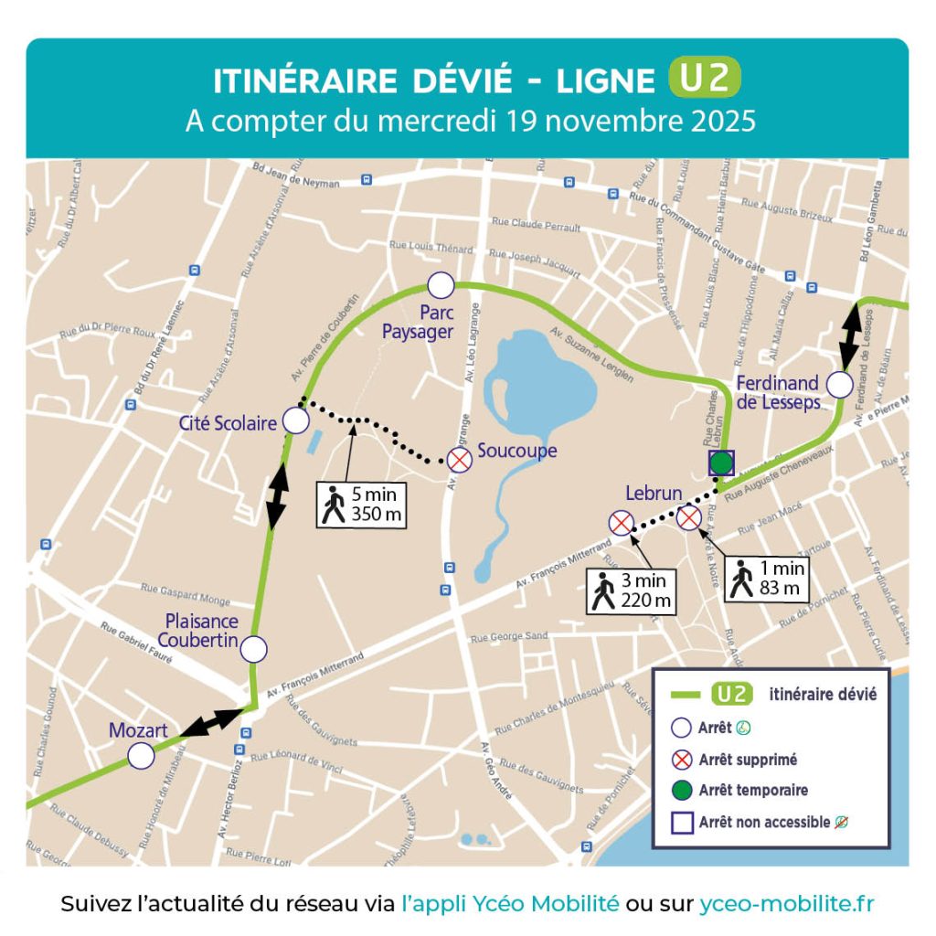 - L’arrêt Soucoupe ne sera pas desservi (dans les 2 sens) et sera reporté à l’arrêt Cité Scolaire (accessible PMR)