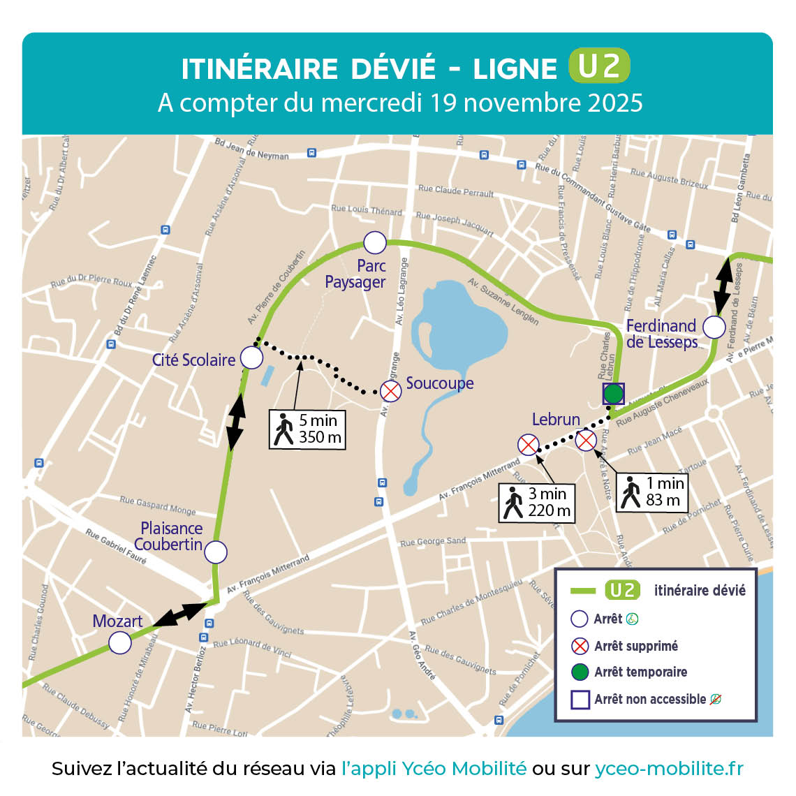 - L’arrêt Soucoupe ne sera pas desservi (dans les 2 sens) et sera reporté à l’arrêt Cité Scolaire (accessible PMR)