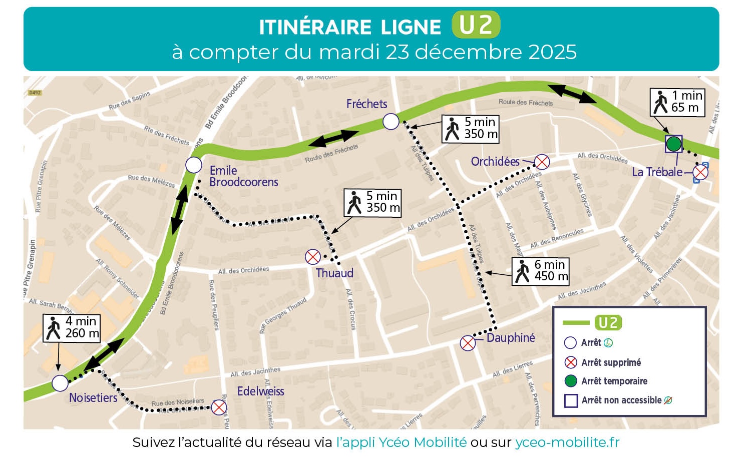 - L’arrêt Dauphiné ne sera pas desservi et sera reporté à l’arrêt Fréchets (accessible PMR)