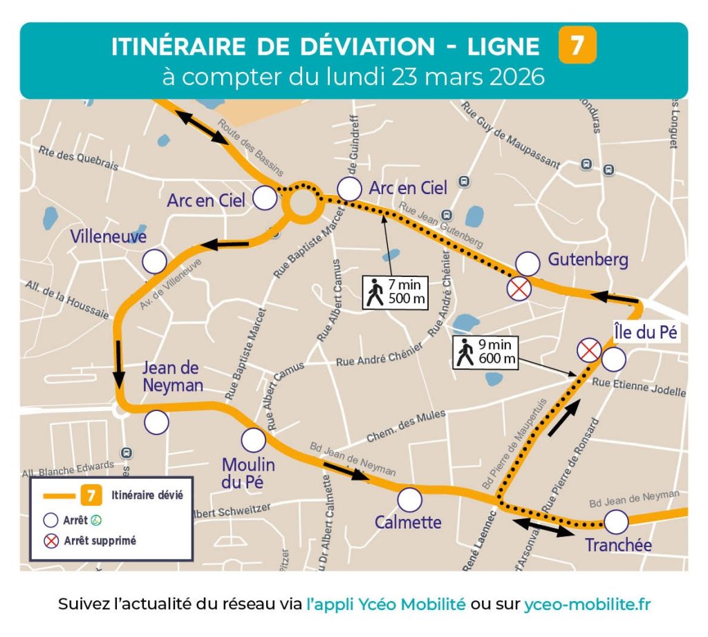 - L’arrêt Gutenberg ne sera pas desservi (vers la Gare de Saint-Nazaire) et sera reporté à l’arrêt Arc en Ciel (accessible PMR)