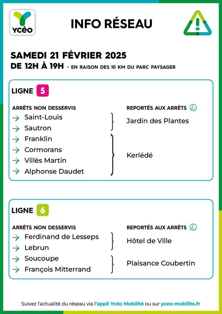 - Les arrêts Soucoupe et François Mitterrand ne seront pas desservis (dans les 2 sens) et seront reportés à l’arrêt Plaisance Coubertin (accessible PMR)