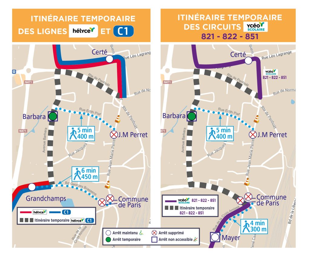 - Arrêt Commune de Paris : reporté à l’arrêt Grandchamps (accessible PMR)