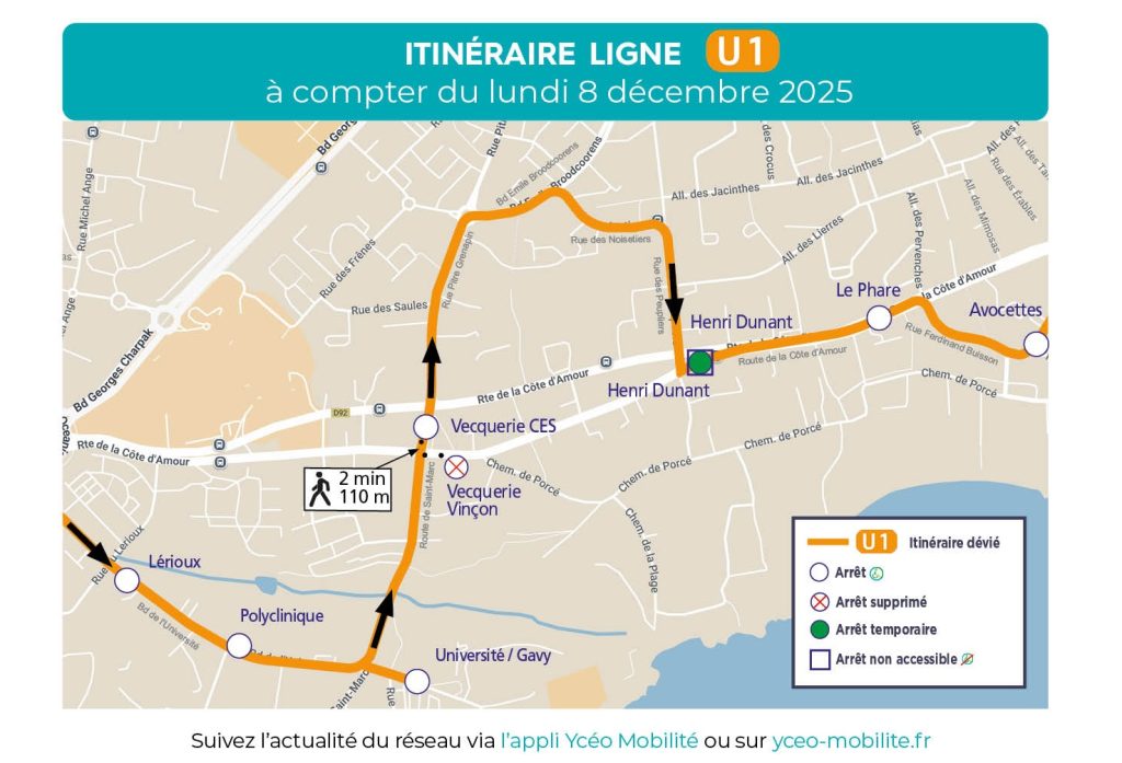 - L’arrêt Vecquerie Vinçon ne sera pas desservi (vers Gare de Saint-Nazaire) et sera reporté à l’arrêt Vecquerie CES (accessible PMR)