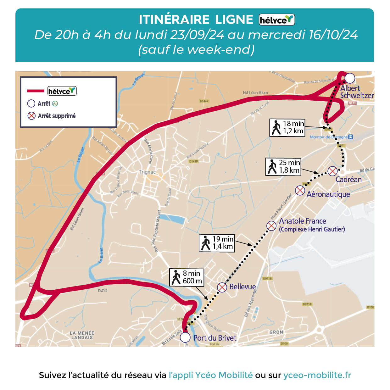 - Les arrêts Aéronautique et Cadréan ne seront pas desservis dans les 2 sens et seront reportés à l’arrêt Albert Schweitzer (accessible PMR)